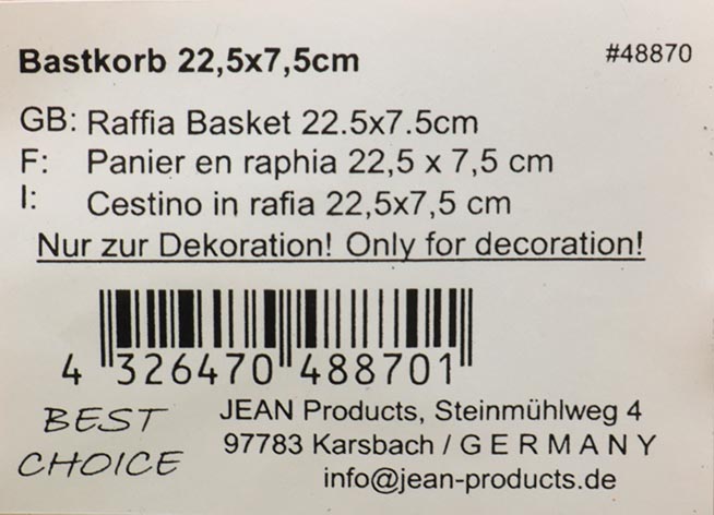 Bastkorb 22,5x7,5cm klassisch, Farben sortiert