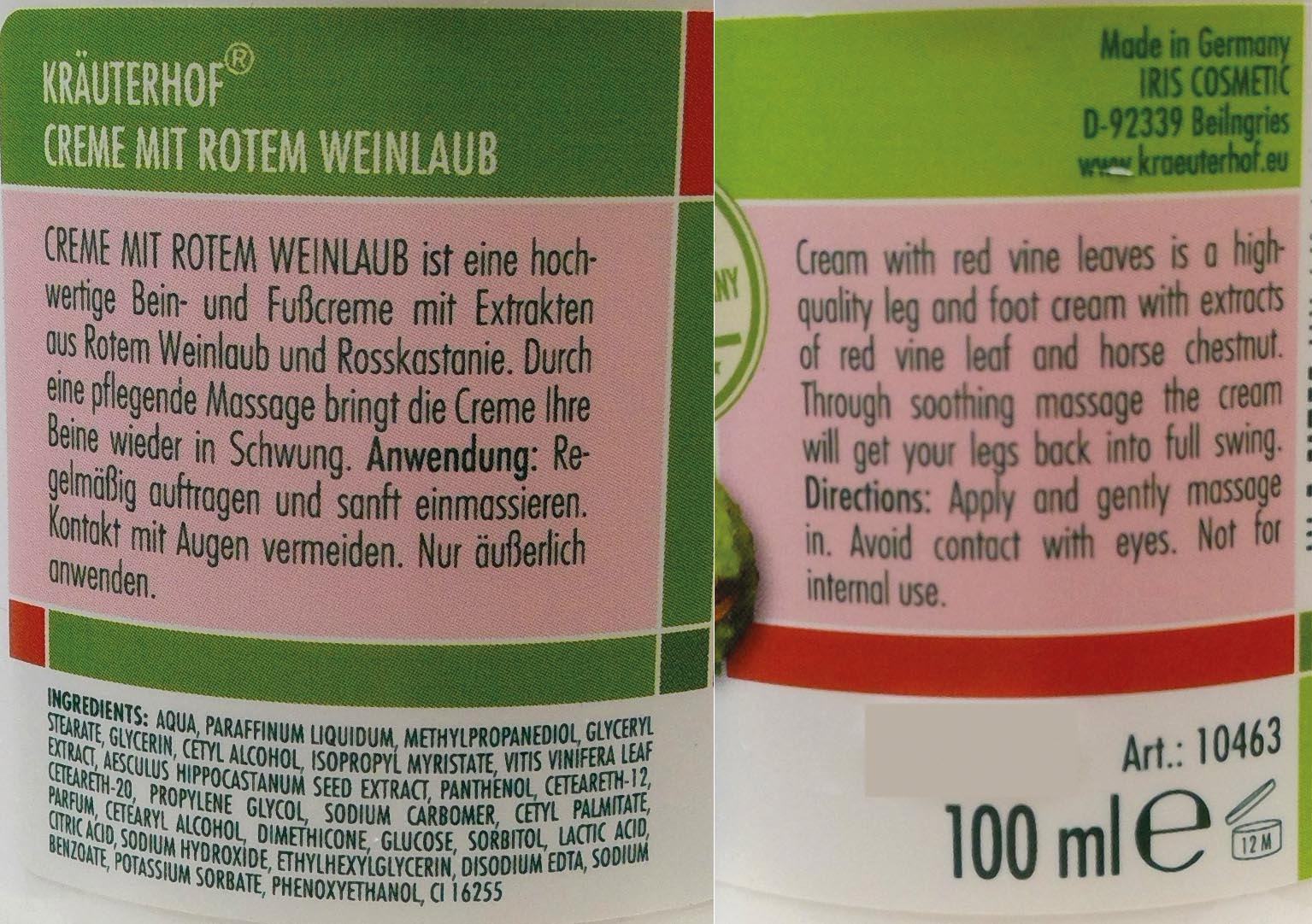 Produktinformationen "Creme Kräuterhof 100ml rotes Weinlaub in Dose"