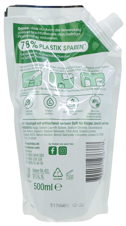 Produktinformationen "Duschdas 500ml For Men Nachfüllbeutel"