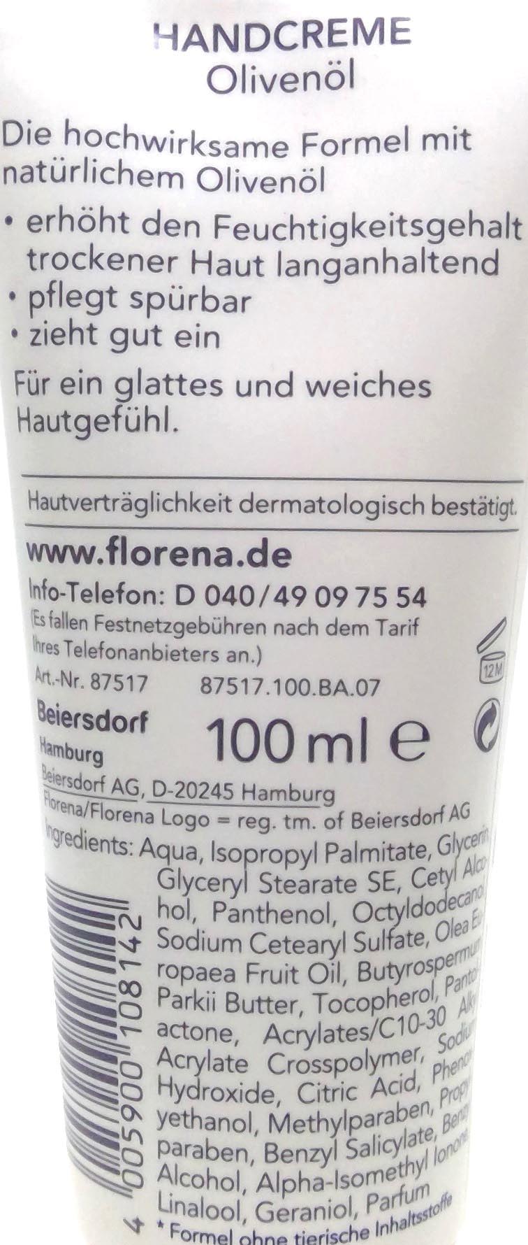 Produktinformationen "Florena Handcreme 100ml Olivenöl Tube"