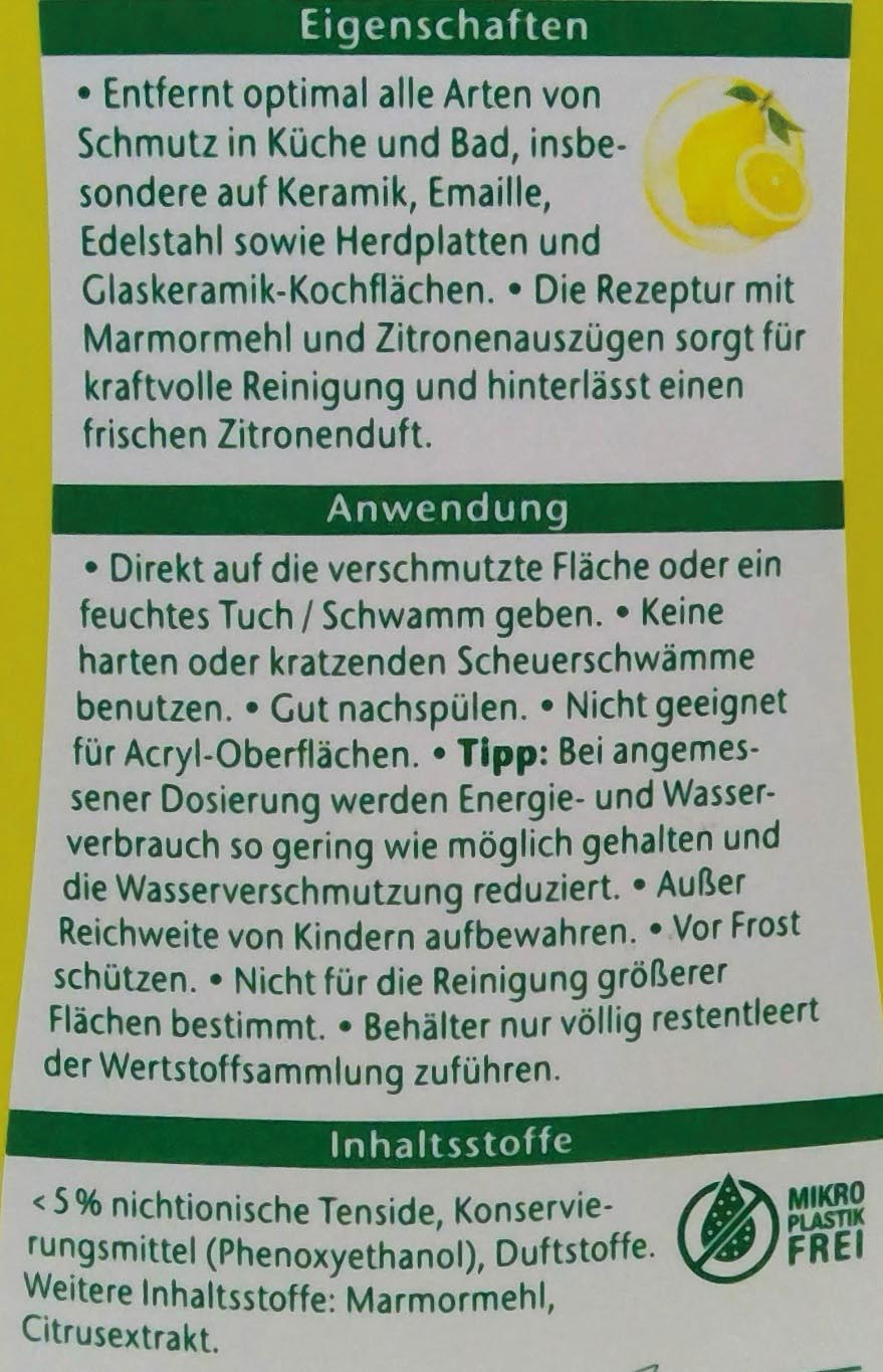 Produktinformationen "Frosch Scheuermilch 500ml Zitrone"