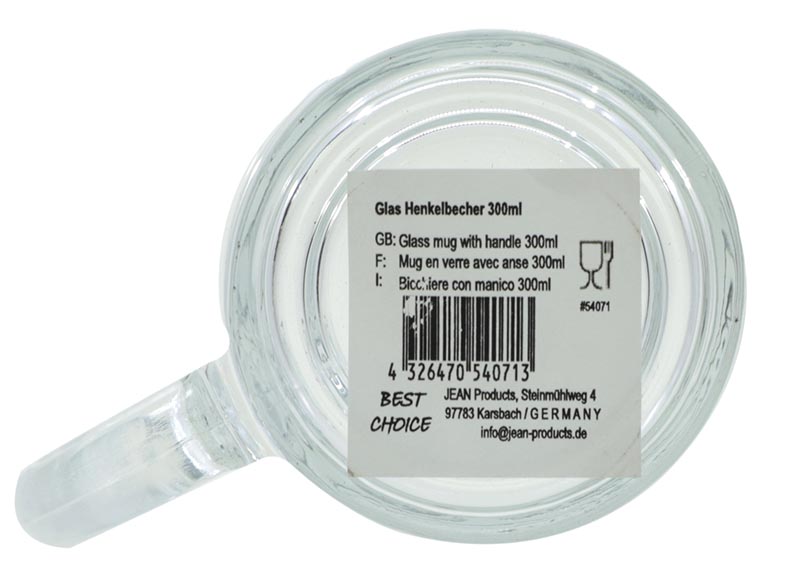 Glas Henkelbecher 300ml, DM: 8cm, H: 10cm