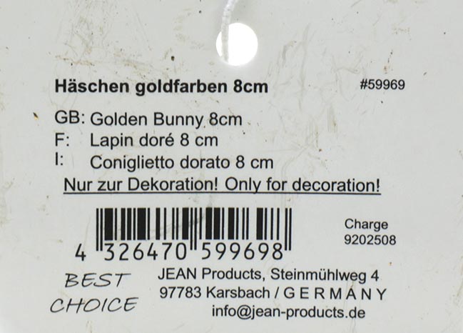 Produktinformationen "Häschen goldfarben 8,1x4,8cm aus feinstem Kunstharz"