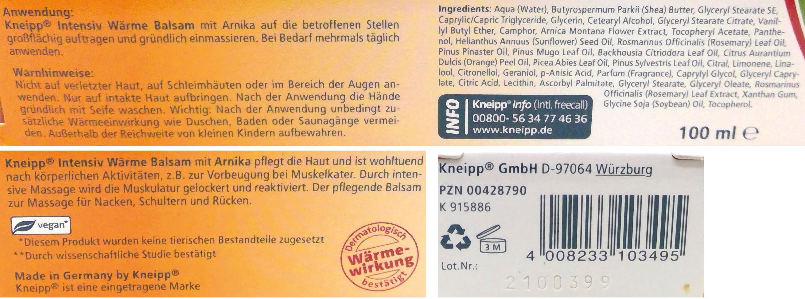 Produktinformationen "Kneipp Wärme Balsam 100ml mit Arnika"
