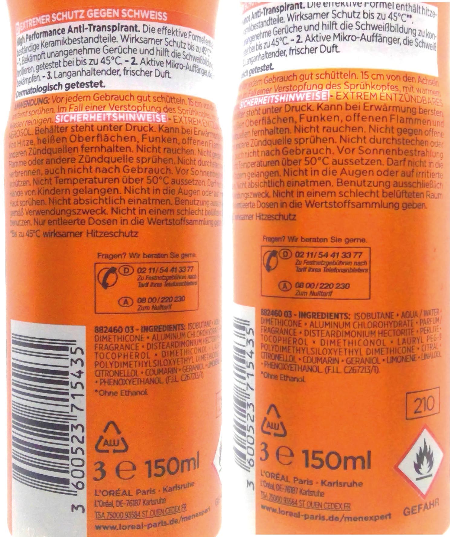Produktinformationen "L'Oreal Men Expert Deospray 150ml Heat Protect"