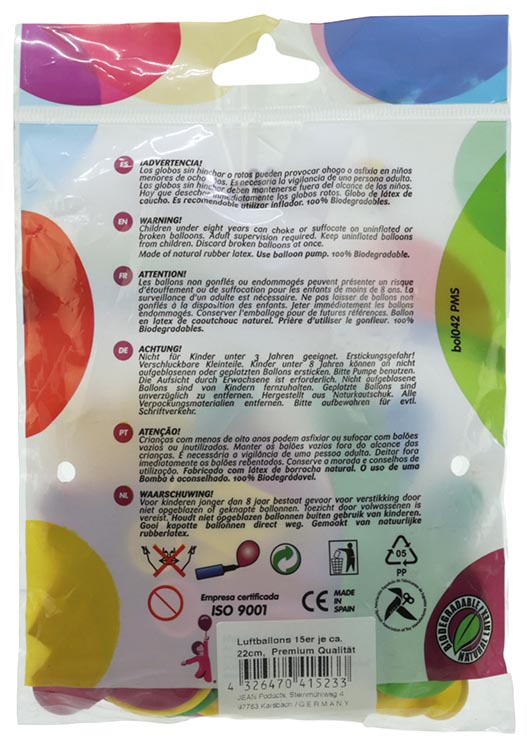 Produktinformationen "Luftballons 15er je 22cm DM aus 100% Naturlatex!"