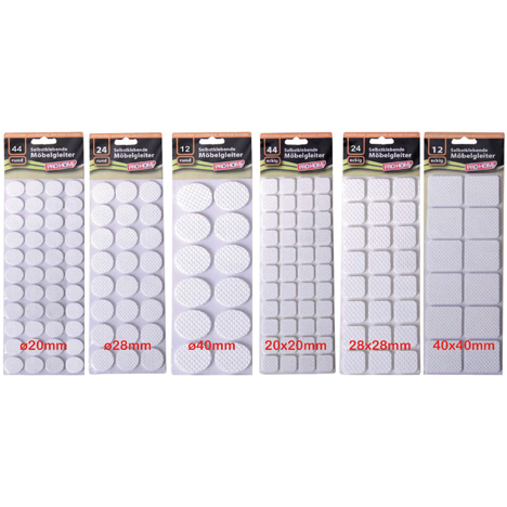 Möbelgleiter Farben und Größen sort. 12/24/44tlg