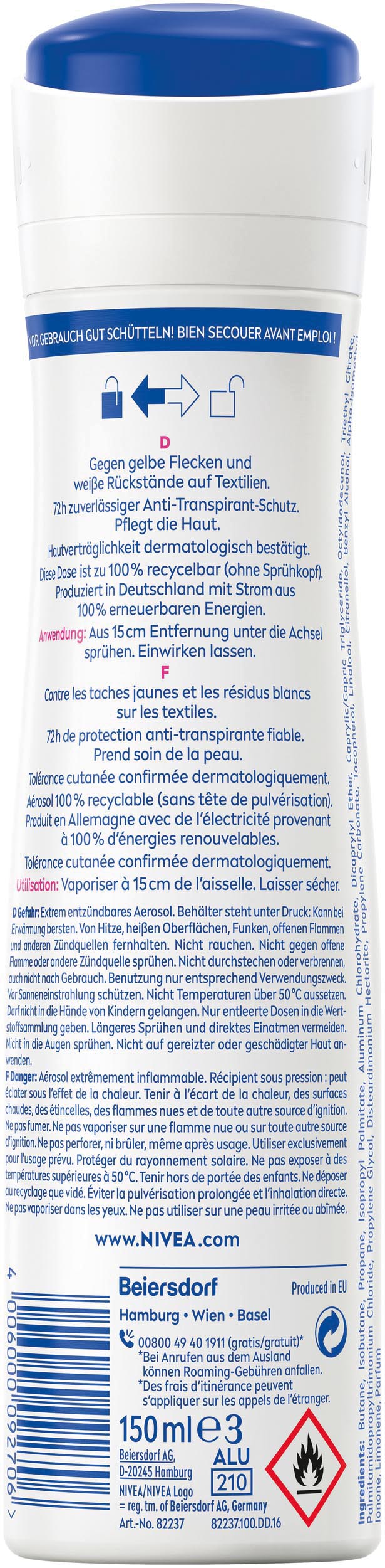 Produktinformationen "Nivea Deospray 150ml Black&White Invisible Clear"