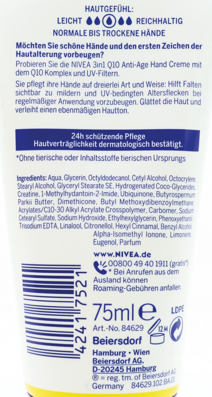 Produktinformationen "Nivea Handcreme Q10 Anti Age 75ml"