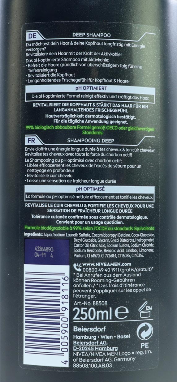 Produktinformationen "Nivea Men Shampoo 250ml Deep Revitalisierend"