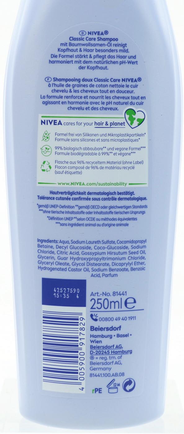 Produktinformationen "Nivea Shampoo 250ml Classic Mild"