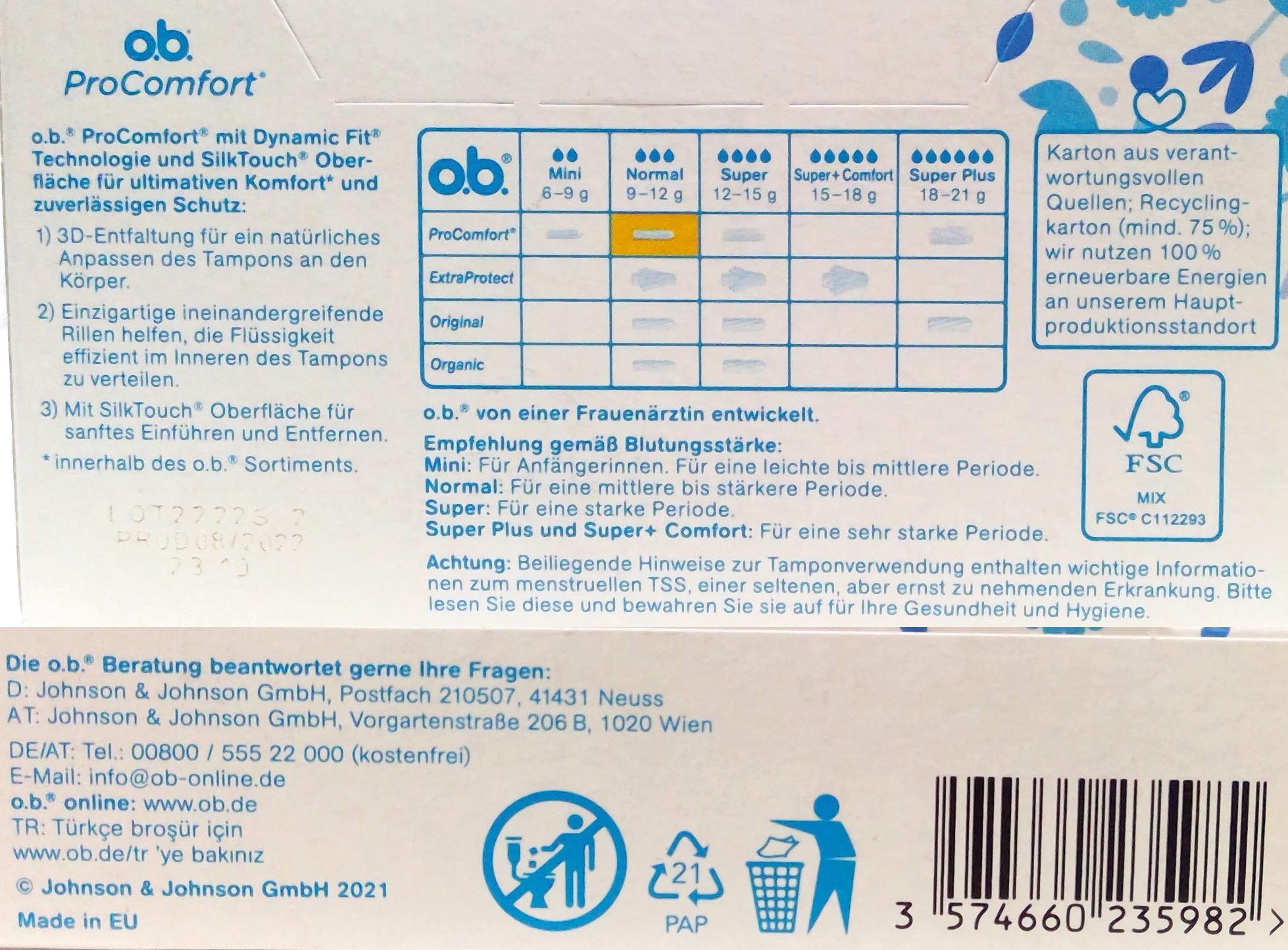 Produktinformationen "O.B. Tampons ProComfort Normal 16er"