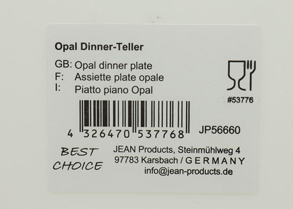stoßfestem Opal-Glas, 3mal beständiger als Porz.,
