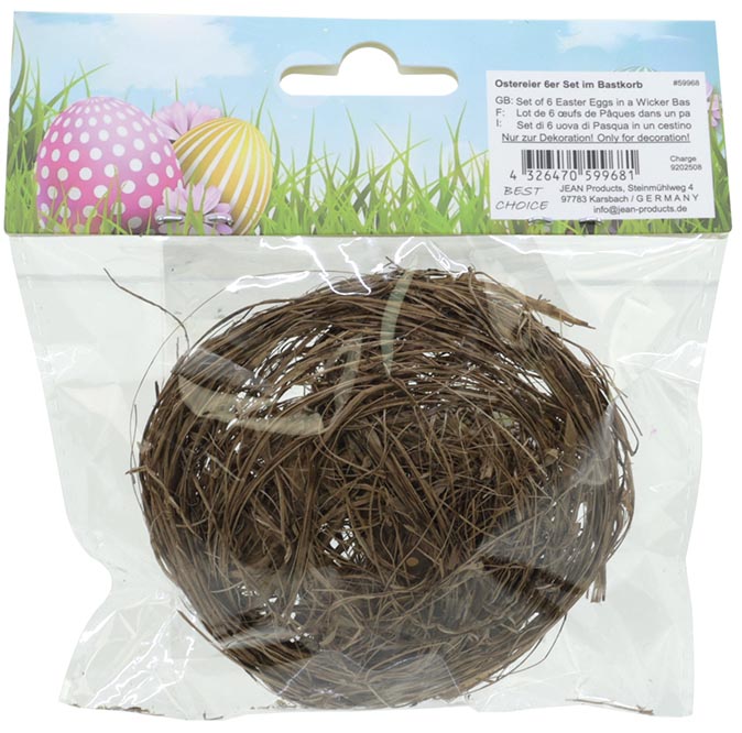 Produktinformationen "Ostereier 6er Set im Bastkorb 9x9x4cm"