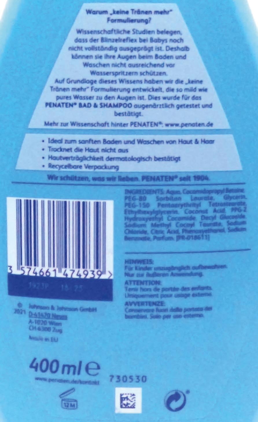 Produktinformationen "Penaten Bad+Shampoo 400ml Kopf bis Fuss"