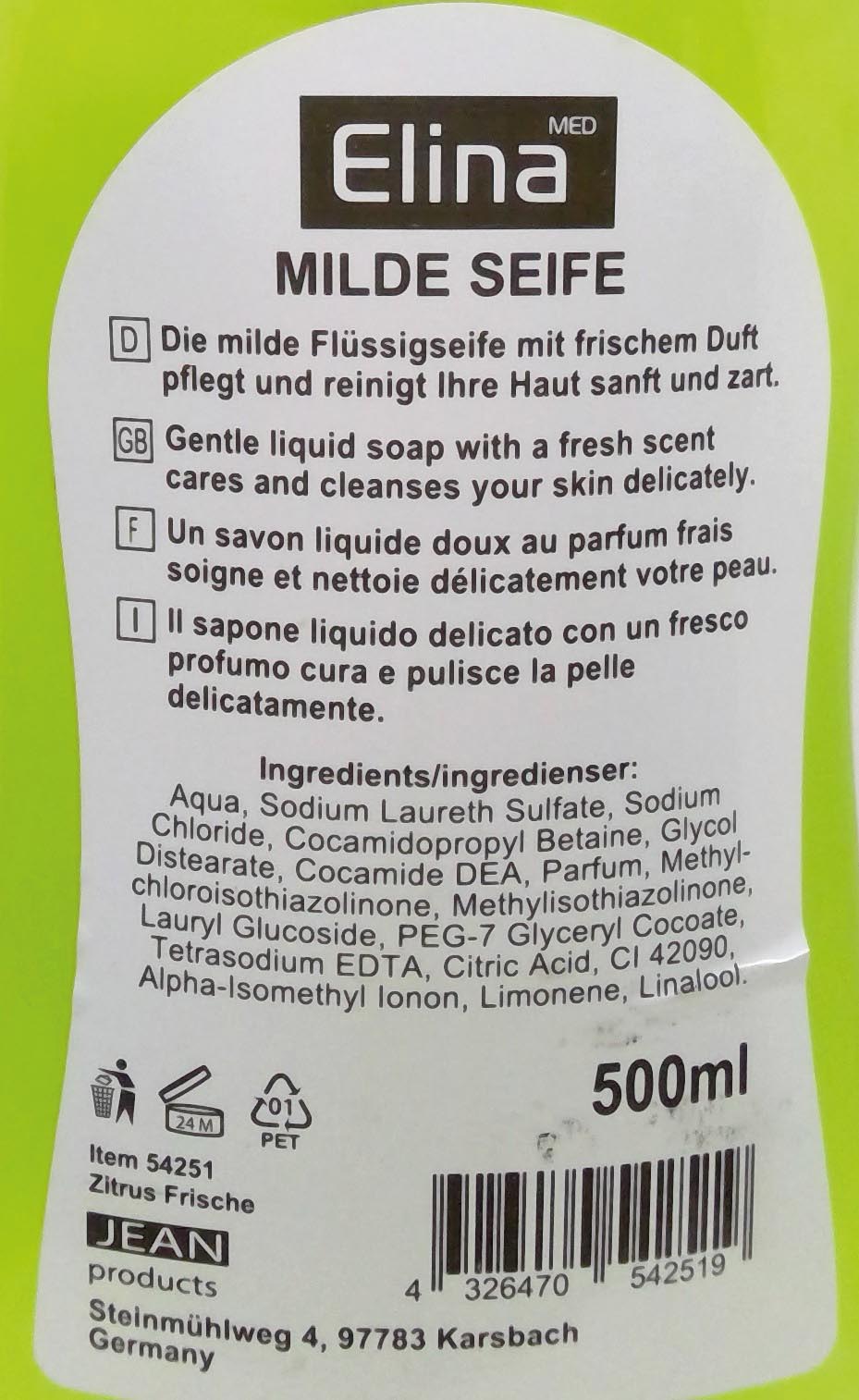Produktinformationen "Seife flüssig Elina 500ml Zitrus Frische Limette"