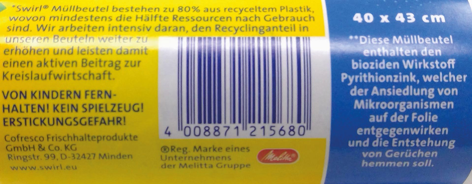 Produktinformationen "Swirl Bad- u. Kosmetikmüllbeutel 10 Liter 37er"