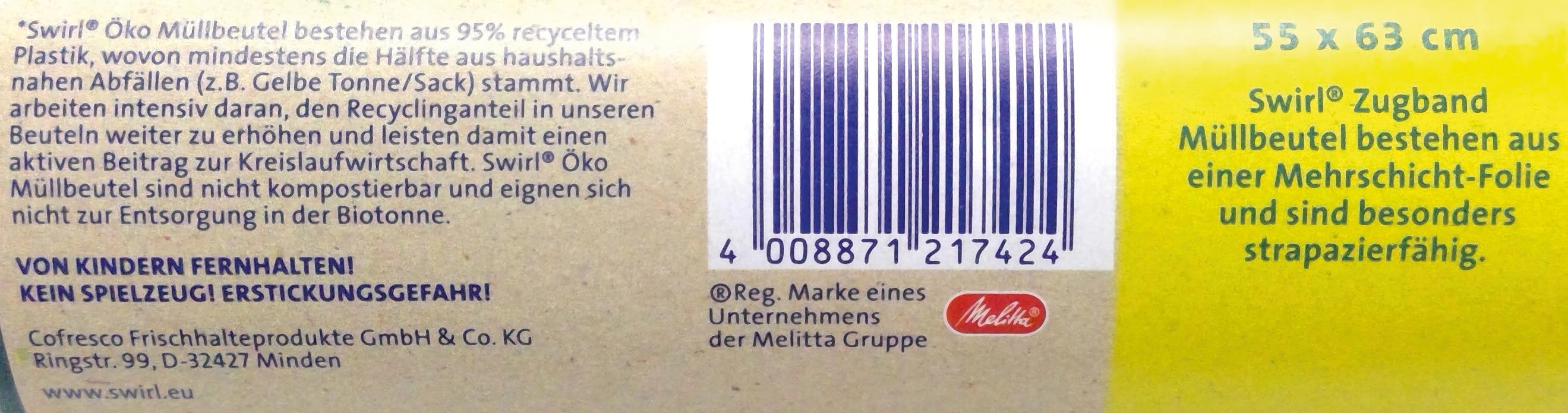 Swirl Öko-Müllbeutel 35 Liter mit Zugband 12 Btl