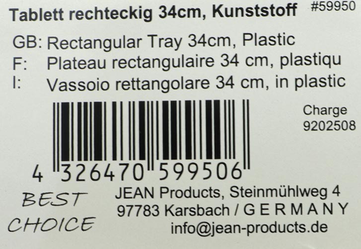 Produktinformationen "Tablett rechteckig XL 34x23cm aus Kunststoff"