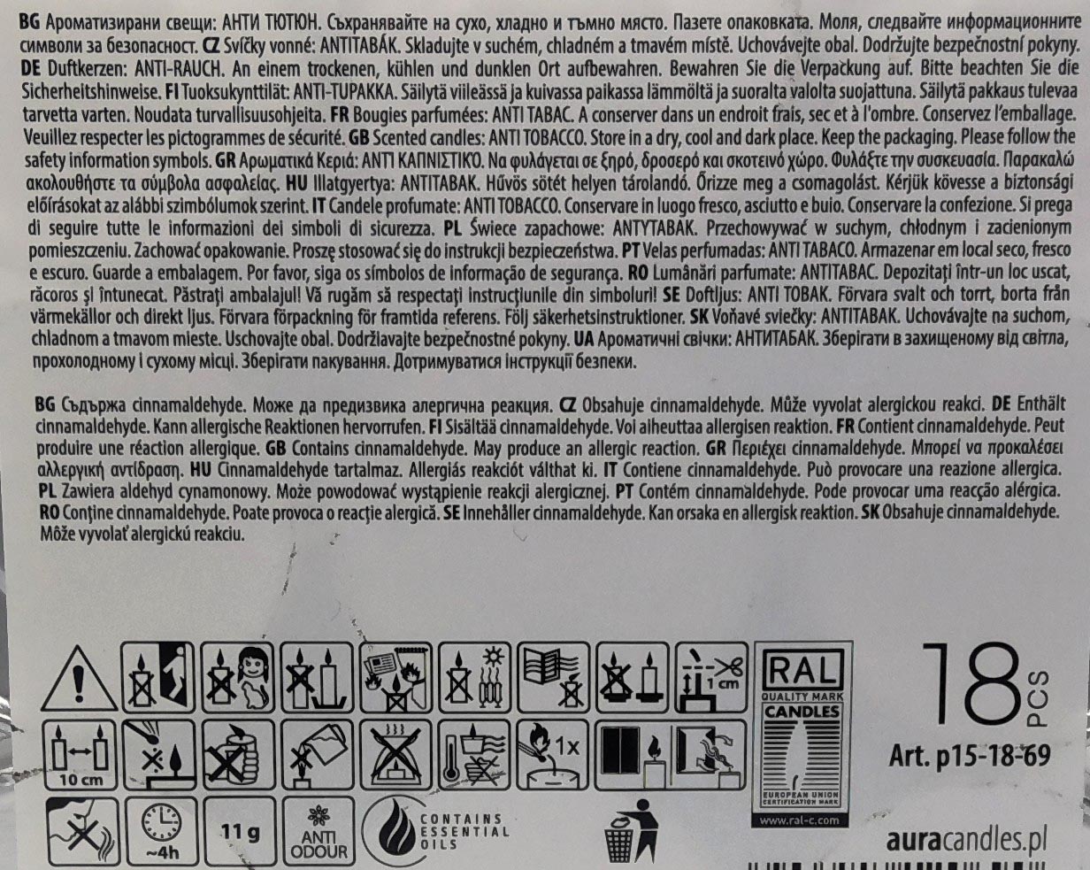 Produktinformationen "Teelichter Duft 18er Anti-Tabak in Blockpackung"