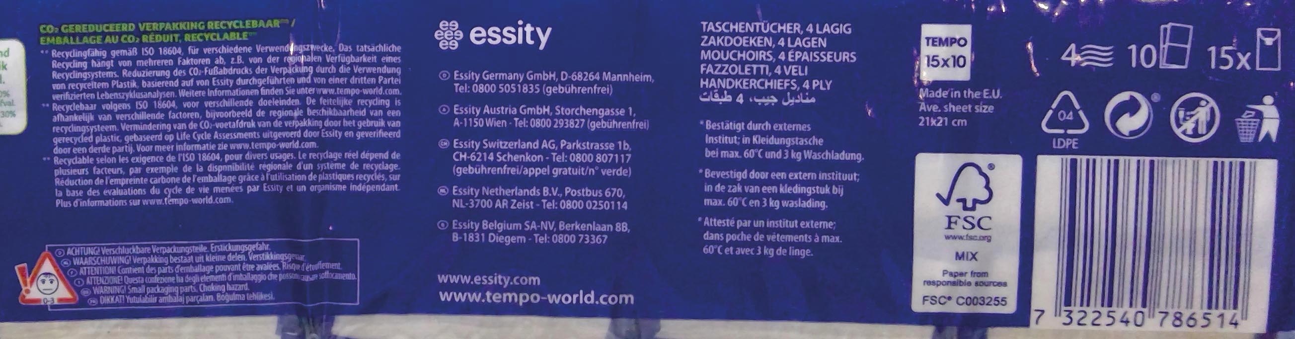 Produktinformationen "Tempo Taschentücher 15x10 4lagig"